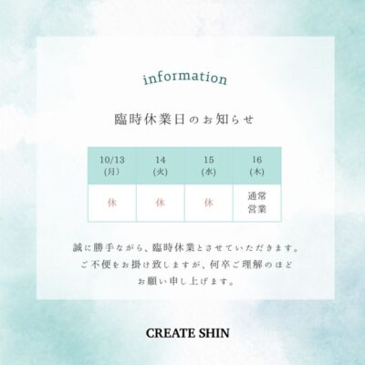 ■臨時休業について■|愛媛・香川・徳島でお家を建てるならクリエイト伸