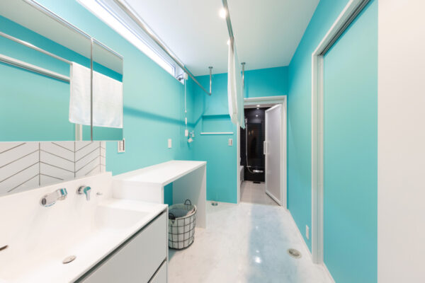 キッチンの裏手には、ランドリールームとウォークインクローゼットに続く7mの動線があり、効率的に家事を行うことができます。