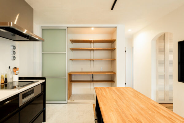 1.5帖のパントリーには、冷蔵庫などの家電製品などを配置。