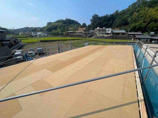 屋根には板金屋さんがルーフィングを施工。