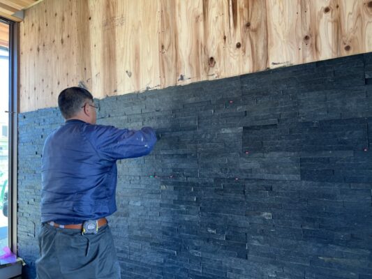 石を貼り、エコカラットを貼り、タイルを貼り、