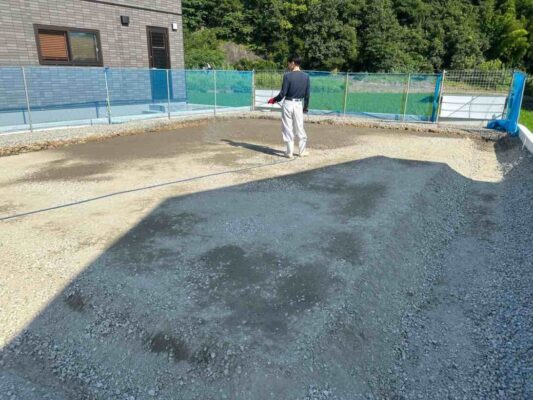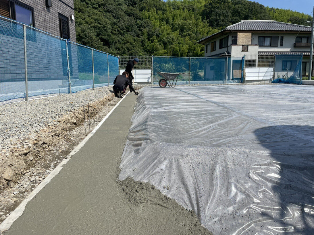 四国中央市にてご新築の基礎工事が着工しました。   基礎工事の始まりは、土地の床掘から始まります。 それぞれお家には、土地の高さにあわせて仕上りの高さを 設定しています。 その高さにあうように既存の地面を掘る作業が必要です。 床掘後は、シロアリ対策の土壌処理を行います。 クリエイト伸では、地盤面と木材(床の土台・構造用合板、基礎外周部、柱高1Mほど)に シロアリ対策を行っています。 土壌処理を行った後、防湿シートを敷きます。 このシートにより、地面から基礎に湿気が流れ込むことを防ぎます。   シート施工後は、型枠を組めるように、 ステコンクリート(ベースコンクリート)を打設します。 この作業ののち、型枠→鉄筋組みと工事が進んでいきます。   これから工事の流れを追ってご紹介していきます!   工務部 大西