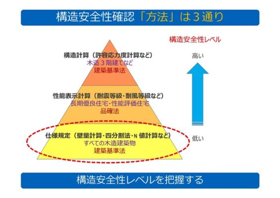 ピラミッド一番上の許容応力度計算の耐震等級3では、