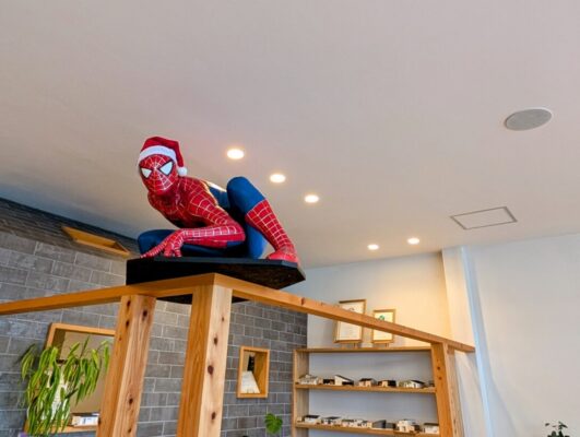 ご来店の際はぜひスパイダーマンサンタをご覧ください☆