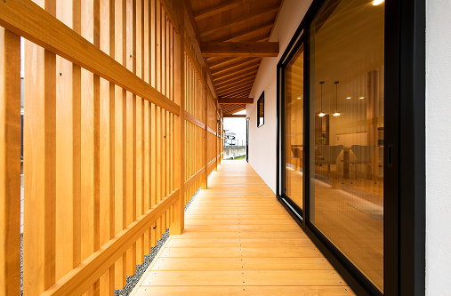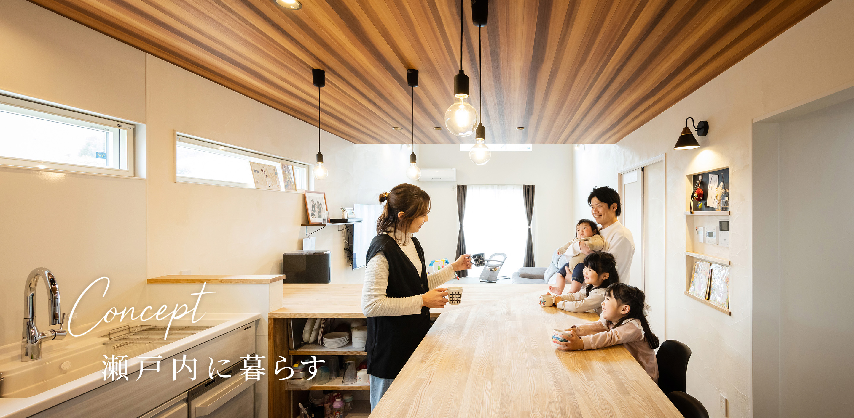 やわらかな光や風を取り入れ、この土地ならではの安らぎを感じられる住まい。自然素材を活かし、四季を通してのびのびと暮らせる空間へ。