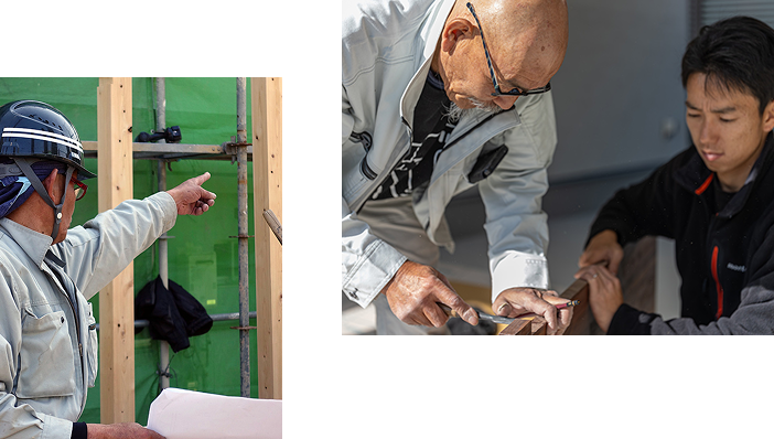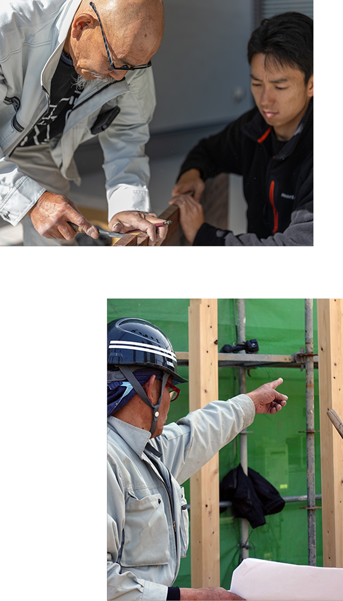 その精度を決めるのは、職人の熟練した技術。だからこそ、私たちは信頼できる職人と共に家づくりを行っています。