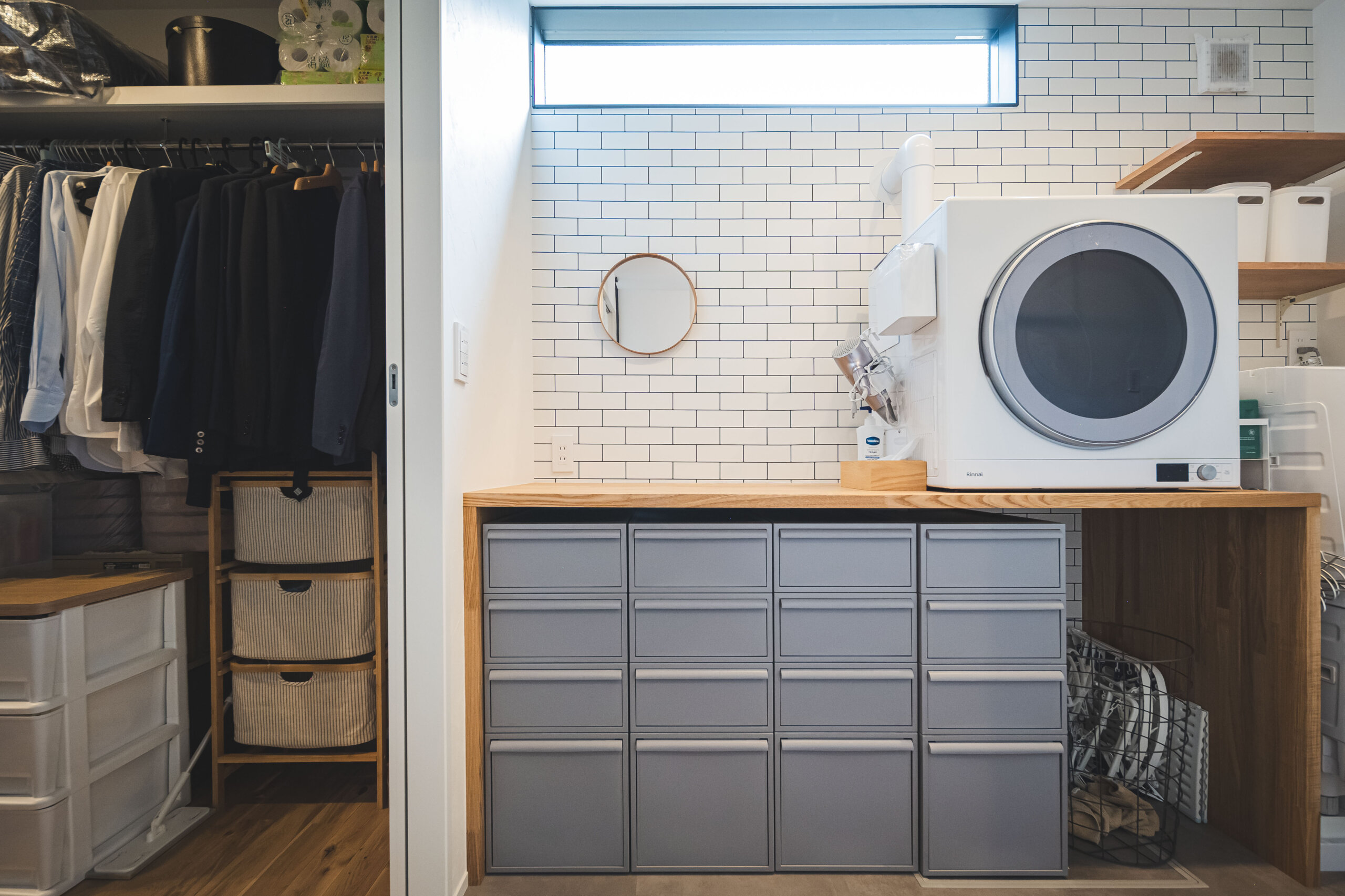 瀬戸内のゆったりした暮らしを大切に、家事効率を高める動線設計を採用。キッチンからランドリーまでL字につながり、「洗う・干す・畳む」が最短で完結します。さらに、荷物の搬入や帰宅後の手洗い・着替えもスムーズに行える工夫で、忙しい毎日にゆとりを生み出します。