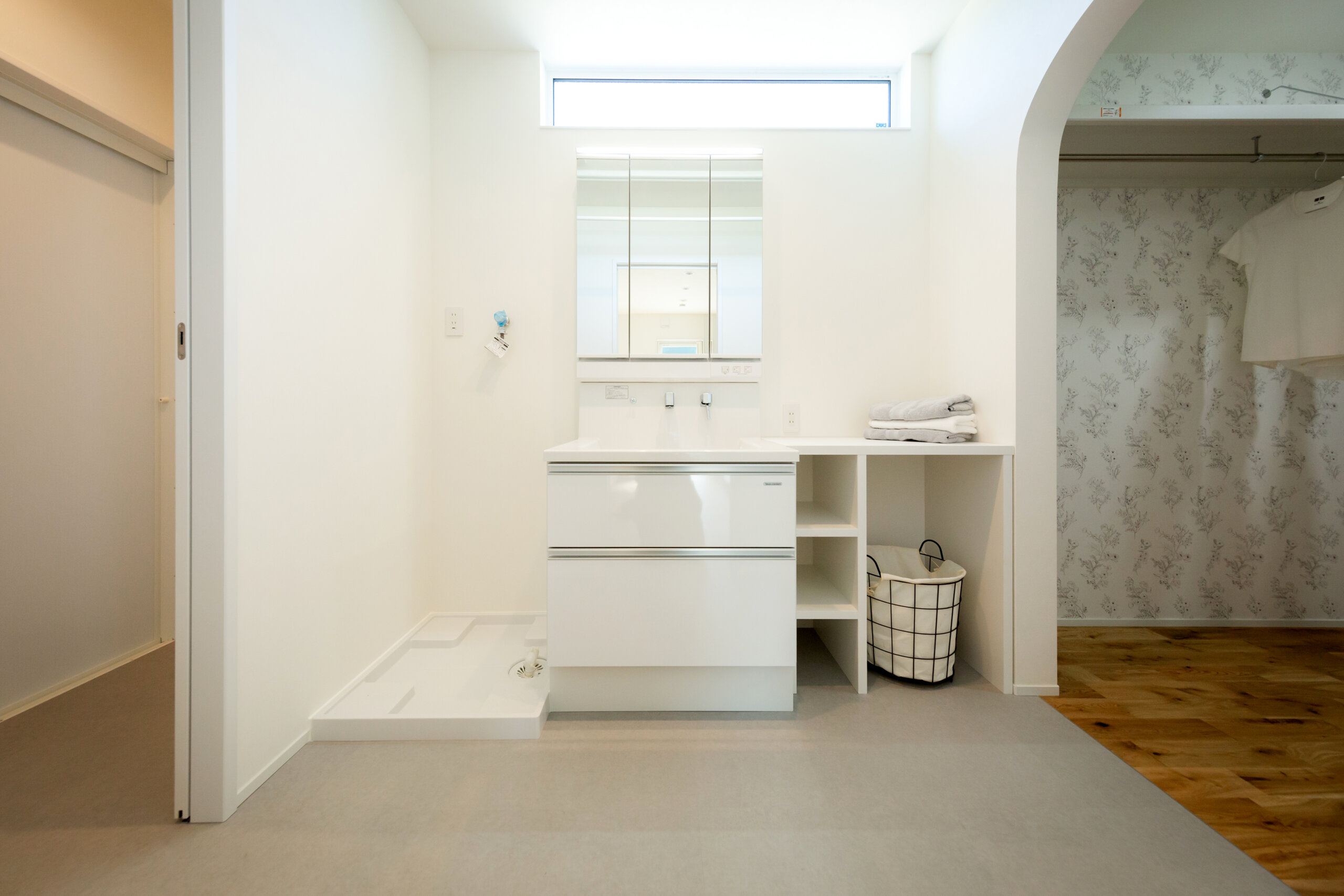 水回りをまとめることで、洗う・干す・しまうまでの家事動線をスムーズに。ランドリーからすぐアクセスできるウォークインクローゼットを設け、片付けまでシンプルに。動線を整えることで、日々の家事負担を軽減します。
