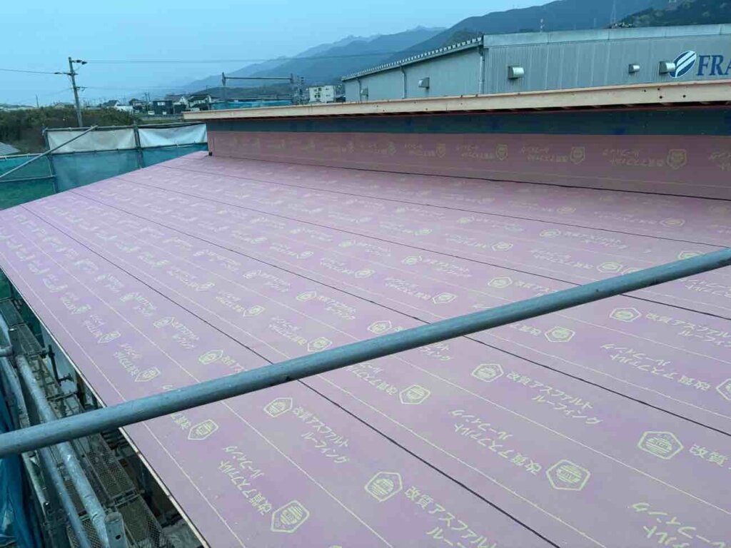 夕方には屋根の防水処理や外部の養生までしっかり行い、