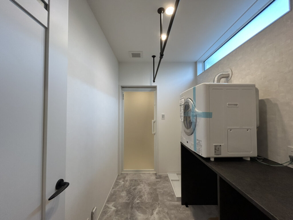 ランドリールームには室内干しと人気の”乾太くん”、作業カウンターを完備。