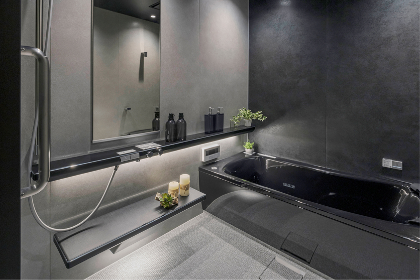 毎日家族が使うバスルームや洗面は、その質感やデザインにまでこだわり、リゾートホテルでくつろぐような時間を楽しむことができます。