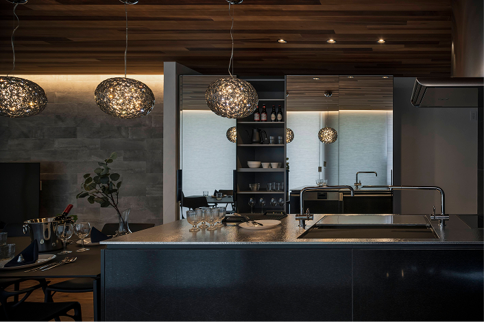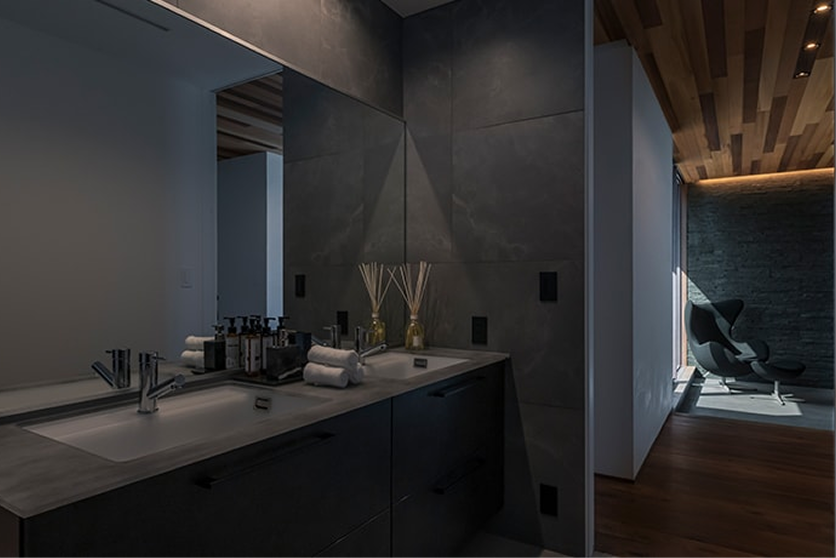 ホテルライクなしつらえ。調光が可能な照明で、色味にもひと工夫。普段の暮らしにホテルのスイートルームの様な感動を生み出します。