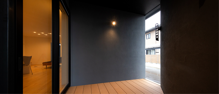 ブラックのドアを配することで、モダンな雰囲気を実現。洗面やトイレといった水回りにも上品なデザインを施し、日常の何気ないシーンを特別なひとときへ。